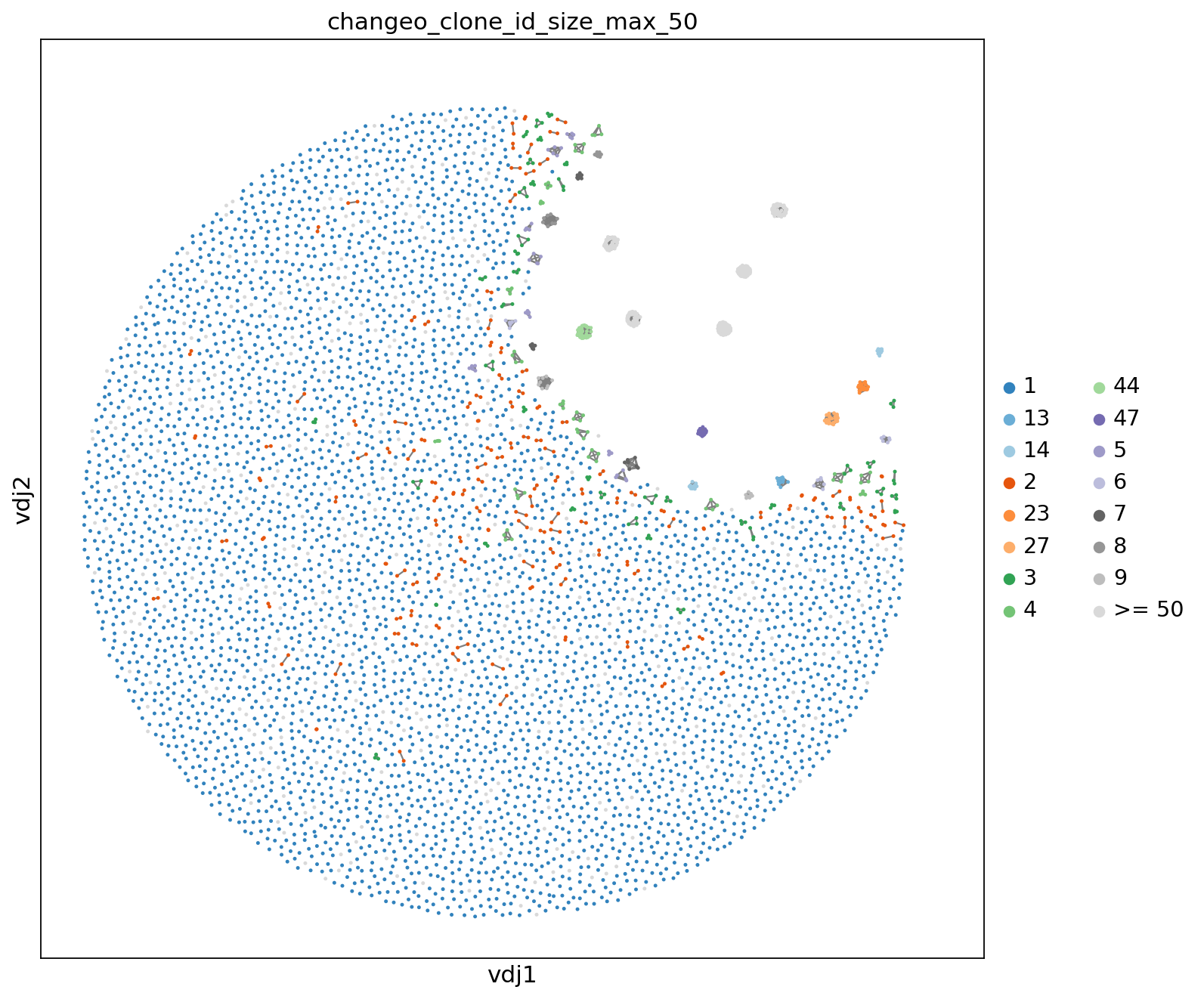 Additionally, it is possible to fix a maximum size to establish a threshold to get a grouped visualization of the clonotypes.