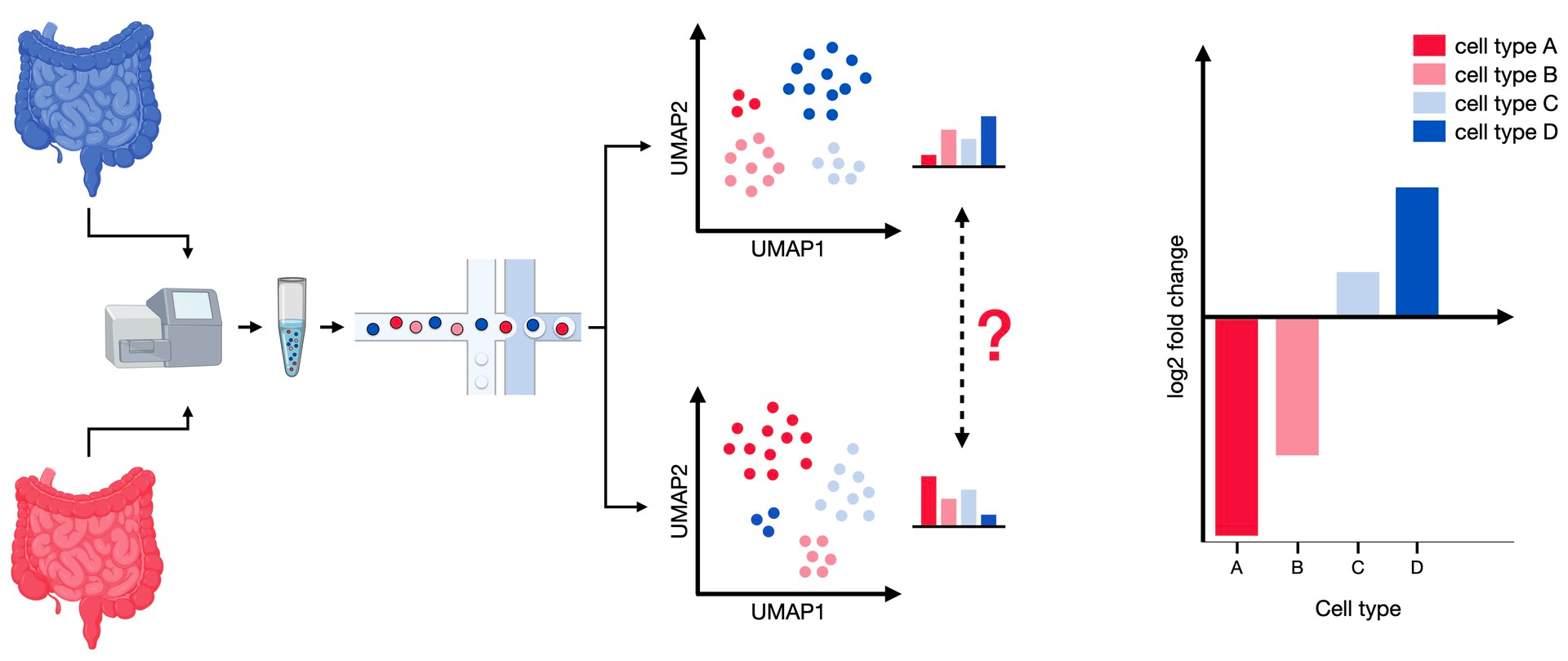 Fig. 17.1 Differential abundance analysis compares the composition of cell types between two conditions. The samples from both modalities contain different proportions of cell types, which can be tested for significant shifts in abundance.#