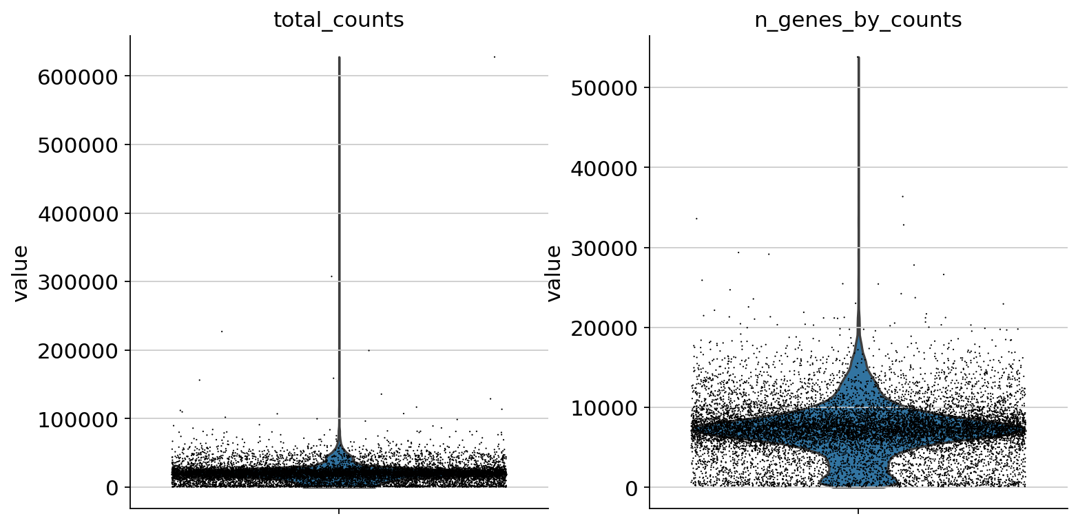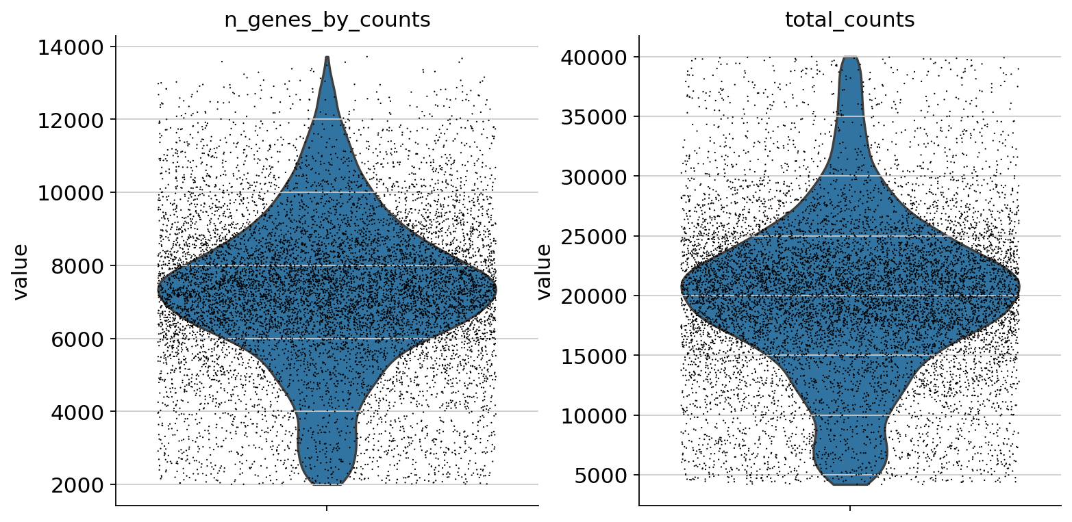 sc.pl.violin(atac, ["total_counts", "n_genes_by_counts"], jitter=0.4, multi_panel=True)