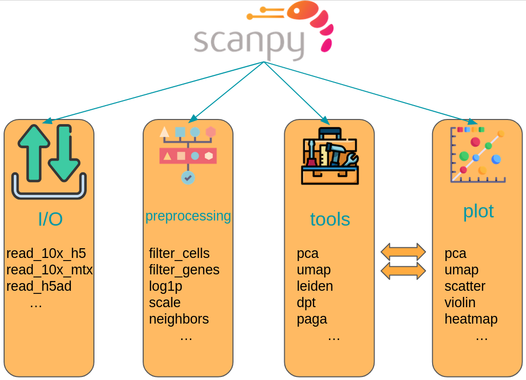 In the following sections the scverse ecosystem will be introduced in more detail and the most important concepts will be explained with a focus on the most important data structures. This introduction cannot cover all aspects of the data structures and frameworks. It is not in scope to introduce all available analysis functions. We therefore refer to the respective frameworks’ tutorials and documentation where required.