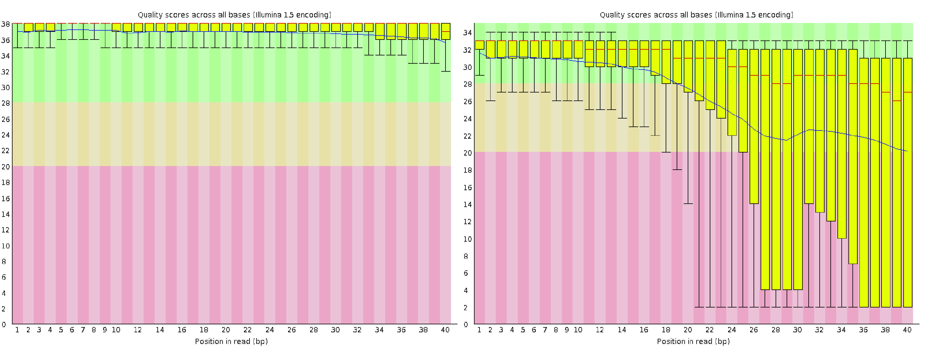 Fig. 3.4 A good (left) and a bad (right) per-read sequence quality graph.#