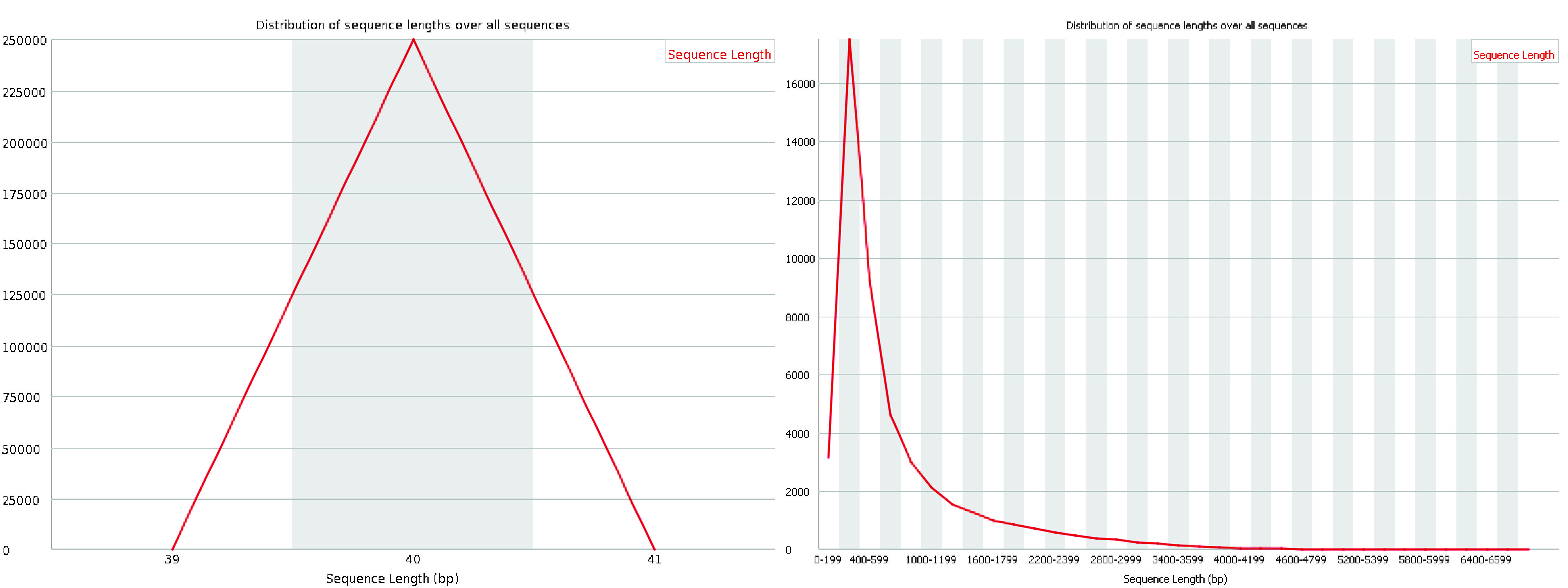 Fig. 3.10 A good (left) and a bad (right) sequence length distribution plot.#