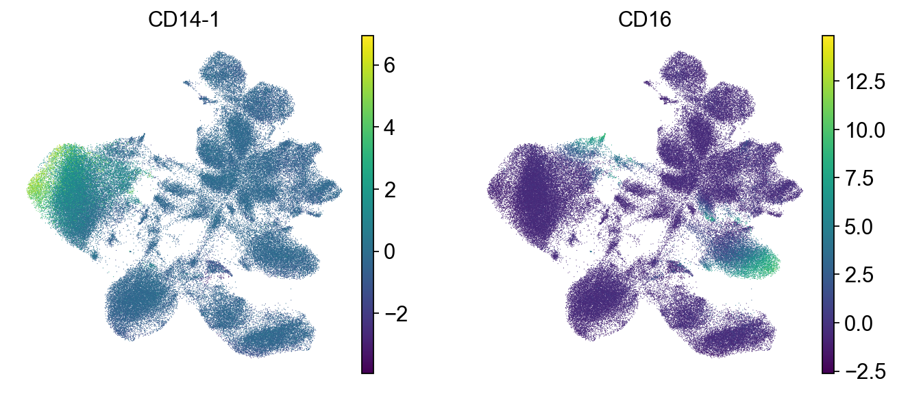 sc.pl.umap(mdata["prot"], color=["CD14-1", "CD16"])