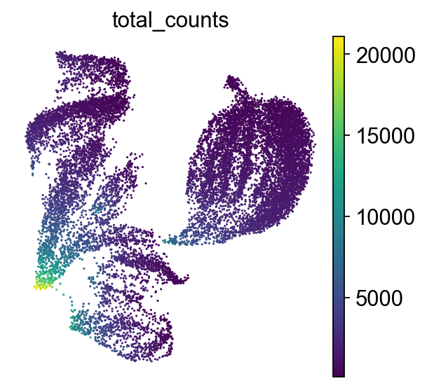 Color indicates the total number of transcripts (UMIs) detected in that cell.